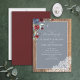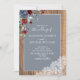 Dusty Blue Burgundy Wood Lace Script Wedding Einladung