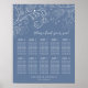 Cet élégant tableau de sièges de table de mariage présente un délicat design ornemental floral avec des fleurs, des oiseaux et des feuilles sur un arrière - plan bleu poussiéreux. Le texte combine écriture manuscrite et polices serif pour un look élégant et moderne. Parfait pour un mariage de automne d'hiver ou d'automne.