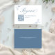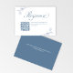Elegant dusty blue floral wedding RSVP design featuring soft botanical accents and a scannable QR code for easy online responses. This minimalist and sophisticated layout blends classic calligraphy script with modern functionality, perfect for coordinating with dusty blue wedding themes. Easily customize with your wedding website and details for a seamless guest experience.