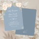 Genießen Sie Ihre staubblaue Hochzeit mit dieser eleganten Einladung, die mit zarten, rot-rosa Blumenakzenten und sanften Wasserfarben-Details besticht. Dieses Modell wurde mit anmutiger Kalligraphie-Schrift, üppiger botanischer Vegetation und einem Gleichgewicht von klassischem Charme und moderner Typografie gestaltet und verbindet zeitlose Romantik mit zeitgenössischem Stil. Ideal für Paare, die ein raffiniertes und dennoch frisches Design suchen, ist es der perfekte Set für eine unvergessliche Feier voller Liebe und Eleganz.