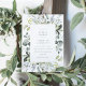 Dieses Design umfasst staubblaue Blumen und eukalyptus-Blätter in Grün.