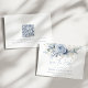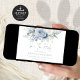 Moderne blaue Florals QR Code Blue Writing Wedding. Verfügbar in digitaler Form und gedruckt. Herrliche Blumen in sommerlich hellblau und weiß und ein elegantes Set-Skript in blau für Save the Date. Die Erholung des Textes können Sie einfach mit Ihren Daten personalisieren. Fügen Sie Ihren QR-Code zu Ihrer Hochzeitswebsite auf der Rückseite oder löschen Sie diesen und den Text auf der Rückseite, wenn nicht erforderlich.