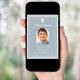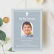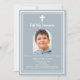 Blauer Hintergrund mit weißem Rahmen und weißem Kreuz Persönlich gestalten und ein Foto mit Details hinzufügen. Weißer Text. Bogenförmiger Rahmen aus Foto