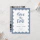 Moderne Eleganz: Dusty Blue Foto Script speichert das Datum der Einladungen mit Wavy Frame Design. Tauchen Sie ein in die Freude kommender Nuptials mit unseren modernen eleganten Einladungen zum Retten des Datums. Diese wunderschön gestalteten Vorlagen verfügen über eine dezente, staubige blau-weiße Farbpalette, die raffinierte Eleganz in jedes Detail einfängt. Eine faszinierende Schrift schmückt die Vorderseite und kündigt die Veranstaltungsdetails an, die von einem zarten, wellenförmigen Rahmen gekapselt werden. Für einen zusätzlichen Touch der Personalisierung, die Rückseite der Einladung hat eine Vorlage für ein Schwarz-Weiß-Foto des Paares. Ob Sie Drucke kaufen möchten oder zeitsparende digitale Downloads bevorzugen, die Wahl liegt bei Ihnen. Unsere Einladungen sind einfach zu individualisieren, wobei jedes Detail perfekt auf Ihr Hochzeitstil abgestimmt ist. Genießen Sie moderne Eleganz und geben Sie Ihren Gästen einen Vorgeschmack auf die schöne Feier, um mit dieser einzigartig gestalteten Hochzeit zu kommen speichern Sie das Datum Einladungen. Zum Personalisieren gehen Sie zur Personalisierung dieser Vorlagendetails. Originelles Design von Ana Garza/Kardz Studio. Wenn Sie Fragen haben, kontaktieren Sie mich bitte über den Zazzle-Chat.