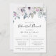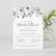 Elegantes Aquarellgrün und Blumenarrangements in staubigen Violetttönen, Rosa, Rosa, Weiß und Grün, Einladung zum Probe-Dinner. Chic und modernes typografisches Design. Die Rückseite der Karte weist eine solide, staubblaue Farbe auf. Entworfen, um unsere Dusty Garden Watercolor Floral Collection zu passen.