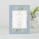 Dusty Blue Greenery Gold Geometric Script Wedding Einladung