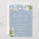 Diese elegante dustige blaue Blumenstrauß-Lichter Hochzeitseinladung kann mit Ihren Informationen in chic Typografie mit Ihrem besonderen Foto, Hochzeitswebdetails und Ihrem QR-Code auf der Rückseite personalisiert werden. Entwickelt von Thisisnotme©