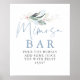 Dusty Blue Greenery Rose Gold Leaf Mimosa Bar Sign Poster