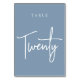 Dusty Blue Hand Scripted Table TWENTY Tischnummer