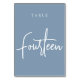 Dusty Blue Hand Scripted Table VIERZEHN Tischnummer