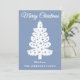 Freuen Sie sich auf Urlaub mit dieser eleganten dustig blauen Weihnachtsbaumkarte, die in Handschrift geschrieben ist. Das moderne kalligraphische Baum-Design in sanften blauen Tönen schafft einen schicken, zeitlosen Look, der perfekt ist, um warme Wünsche an Familie, Freunde oder Kunden zu senden. Persönlich für einen stilvollen und herzlichen Urlaub Gruß.