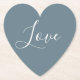 Dusty Blue Heart White Liebe Script Paper Untersetzer sind ein einfaches und elegantes Design. Der herzförmige Hintergrund ist anpassbar staubige Bläschen und das Wort "Liebe" ist in der Mitte ein weißes handgeschriebenes Schriftsatz. Die Tischdekoration ist perfekt für Hochzeiten oder Party!