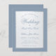 Eine sehr einfache, preiswerte Hochzeitseinladung. Es hat einen staubblauen und Imitate silberfarbenen rechteckigen Rahmen und einen staubblauen Text auf weißem Hintergrund. Die Wörter Wedding und die Namen sind in einem eleganten kalligrafischen Skript geschrieben.