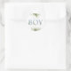 Es handelt sich um einen Babyduschaufkleber mit eleganter staubblauer Typografie und hübschem botanischem Grün. Entwickelt von Thisisnotme©