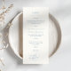 Cette carte à la carte chic et minimaliste présente un ensemble de polices contemporaines en bleu poussiéreux, contre un arrière - plan chic en ivoire. Il comprend 4 parties repas et boissons. Le modèle comprend également un monogramme de couple dans une combinaison de blues poussiéreuses. Plus de couleurs disponibles dans la même collection.