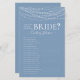 Dieses schöne, staubblaue Licht wie gut Sie wissen Das Bride Brautparty Spielblatt ist einfach und charmant - perfekt für jede Dusche. Dieses lustige und leichte Spiel bringt jede Menge Lachen in jedes Brautparty! Einfach jedem Gast ein Blatt geben (vergessen Sie nicht die Stifte) und den Spaß gelassen beginnen! Sie werden erstaunt sein, wie viele Antworten die Leute nicht wissen. In Sekunden können Sie sehen, wie Ihr Spielblatt aussehen wird. Wählen Sie einfach diese Vorlage personalisieren und geben Sie den Namen der Braut ein.