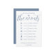 Dusty Blue Mariage Programme de l'ordre des événements | Elegant Blue Timeline Ceremony Guide guide vos invités à travers votre journée spéciale avec notre élégant Dusty Blue Mariage Order Program! Ce programme chic présente des tons bleus poussiéreux et sereins, offrant un aperçu sophistiqué et clair de la chronologie de votre mariage. C'est le moyen idéal de s'assurer que vos invités sont informés et engagés dès leur arrivée. Ce programme d'événements est idéal pour les couples qui veulent fournir un horaire détaillé mais élégant pour leurs invités. Les tons bleus poussiéreux et apaisants évoquent un sentiment de tranquillité et de sophistication, parfait pour les mariages élégants, modernes ou côtiers. Un programme bien conçu permet aux clients de suivre la cérémonie, de savoir quand s'attendre à l'heure du cocktail et au dîner, et de comprendre tous les moments spéciaux prévus pour la journée. Customisez facilement ce programme chronologique mariage avec tous les moments clés de votre journée spéciale : cérémonie de début, cérémonie de mariage, voeux, lectures, musique spéciale, cocktail-heure, dîner, danse et tout autre événement important. Vous pouvez personnaliser les polices, le placement de texte et la mise en page pour qu'elles correspondent parfaitement à votre vision mariage unique. Faites votre choix parmi la grande variété de types de papier haut de gamme de Zazzle pour vous assurer que vos programmes se sentent aussi luxueux qu'ils en ont l'air. Coordonnez ces beaux programmes de l'ordre des événements de Dusty Blue Mariage avec vos invitations, des panneaux d'accueil et d'autres papeteries mariages pour une célébration parfaitement cohésive et mémorable. Cliquez sur "Customiser maintenant" pour personnaliser votre programme d'ordre des événements Dusty Blue Mariage et partager le flot magnifique de votre journée de mariage avec une clarté élégante! ordre bleu poussiéreux des événements, programme de mariage élégant, guide de ligne de temps bleu, programme de mariage personnalisé, programme de cérémonie bleu poussiéreux, programme de fêtes de mariage, programme d'événement moderne, programme d'accueil bleu, programme d'information des invités, programme de jour de mariage
