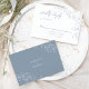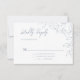 Dieses dustig blaue minimale Blatt Hochzeit rsvp Design perfekt verkörpert eine moderne romantische Ästhetik. Mit einer klassischen Mischung aus staubblauem Hintergrund mit minimalen weißen Blattmustern, die durch ein einfaches Kalligraphieskript ergänzt wird, das mit einem dezenten Serif-Schriftart gepaart ist. Das Ergebnis ist ein perfekt gepflegtes Ambiente für Ihre Hochzeit, wobei jedes Detail die Eleganz Ihrer Liebe widerspiegelt. Entdecken Sie unsere kuratige Auswahl an aufeinander abgestimmten Einladungen, rett-the-date, Gehäusekarten sowie Zeremonie und Empfang-Dekoration in der Dusty Blue Minimal Leaf Wedding Collection. Die Sammlung bietet mühelose Möglichkeiten, eine wirklich schöne und unvergessliche Ehefeier zu präsentieren. Ob Frühjahr, Sommer, Herbst oder Winter, das zeitlose Vintage Ambiente dieser Designs verspricht einen charmanten und zauberhaften Weg, Ihre einzigartige Reise gemeinsam zu ehren. Wir hoffen, dass Sie mit dieser Kollektion so viel in Liebe fallen wie wir. Bei Fragen oder speziellen Wünschen für unsere Designs, zögern Sie bitte nicht, uns zu erreichen. Wir freuen uns, Ihnen in jeder Hinsicht zu helfen.