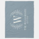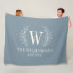 Dusty Blue Modern Laurel Leaf Monogram Fleecedecke