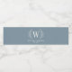 This blue and white water bottle label is decorated with a laurel leaf monogram and your name and wedding date. An elegant label for your wedding. Personalize it with your Initial, name and wedding date. Designed for you by Blackberry Boulevard.