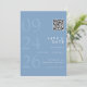 This save-the-date card features modern typography on a dusty blue background. The clean and minimalist layout gives it a fresh and elegant look. The design includes a QR code that links to your wedding website, making it easy for guests to view event details and updates. It is simple, modern, and easy to customize.