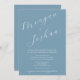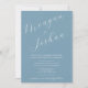 Set Sie den Ton für Ihre romantische Frühlings- oder Sommerhochzeit mit dieser eleganten, staubblauen Hochzeitseinladung. Dieses Design mit einem klaren Layout und fließender Schriftzeichen für die Namen der Paare bietet eine moderne, minimalistische Ästhetik mit einer weichen saisonalen Touch. Ideal für Hochzeiten mit einer abgedämpften blauen Farbpalette, ist diese Einladung für Ihren besonderen Tag individuell anpassbar. Pair mit passenden RSVP-Karten, Menüs und Schreibtischservice für eine zusammenhängende Suite.