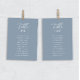 Moderne et élégante carte de sièges par table présente un design minimaliste bleu et blanc poussiéreux. Personnalisez avec les noms et les numéros de table de votre invité avec le modèle facile à modifier avec une police de script élégante et une police serif classe. Découvrez les objets correspondants dans la collection "Dusty Blue Modern Elegant".