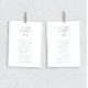 Moderne et élégante carte de sièges par table présente un design minimaliste bleu et blanc poussiéreux. Personnalisez avec les noms et les numéros de table de votre invité avec le modèle facile à modifier avec une police de script élégante et une police serif classe. Découvrez les objets correspondants dans la collection "Dusty Blue Modern Elegant".
