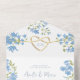 Moderne, elegante, boho floral, Wildblume periwinkle staubblaue Hochzeitseinladung mit QR-Code, goldenes Seilherz und Monogramm.