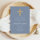Dusty Blue Religious Cross Boy Erste Kommune Einladung