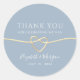 Eleganter Rundaufkleber in sanft staubblauer Gastgeschenk Hochzeit, minimalistisches Seilherz und zartes modernes Drehbuch. Eine perfekte Touch für Gläser, Taschen oder Dankesgeschenke. Personalisieren Sie Ihre Daten mit Namen und Datum. Koordiniert mit der Dusty Blue Wedding Suite. Hilfe: bpkolman@gmail.com