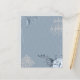 Farbtöne in Blau und Grau mit Rose, Eukalyptuszweig und Streamer.