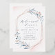 Moderne Probe-Dinner-Einladung mit rustikalen dustigen blauen Wasserfarben botanischen Blattgrün-Design mit echten Rose Gold-Folie Blätter und geometrischen Rahmen, einfach und elegant. Alle passenden Teile in der Sammlung anzeigen