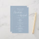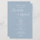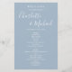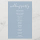 Elegantes dusty Blue-Signature-Skript Hochzeitsempfang-Programm mit Signature-Stilnamen. Lassen Sie sich mit Ihren Hochzeitsdetails in schicken weißen Schriftzeichen persönlich verwöhnen. Entwickelt von Thisisnotme©