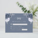 Dusty Blue Silver Floral Script Wedding RSVP Begleitkarte
