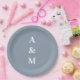 Dusty Blue Simple Monogram Initial Elegante Hochze Pappteller
