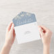 Alles in einer Hochzeitseinladung mit hübschen Saitenlichtern, Maurerkirschen, elegantem Signaturskriptnamen und Monogramminitialen auf staubblauem Hintergrund. Die Einladung enthält eine perforierte RSVP-Karte, die für Sie individuell adressiert oder links als leere Karte für die Handschrift der Adressdaten Ihres Gastes verwendet werden kann. Entwickelt von Thisisnotme©
