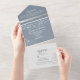 Set den Ton für deinen besonderen Tag mit dieser rustikalen dustigen blauen Hochzeitseinladung. Dieses All-in-One-Design mit seinen kahligen Saitenlichtern und Vintagen silbernen Blumenakzenten verleiht Ihrem Fest einen behaglichen und eleganten Look. das zarte Kalligrafieschreiben verleiht dem Hotel eine persönliche Touch und eignet sich somit hervorragend für zeitgenössische Winterhochzeiten. Passen Sie Ihre Foto- und Hochzeitsdetails an, um Ihren Gästen einen unvergesslichen ersten Eindruck zu vermitteln. Bitte beachten Sie: Diese Einladung erfordert einen separaten Briefumschlag. Wir empfehlen die Verbindung mit einem A9-Umschlag (5,75" x 8,75") für die beste Passform.