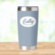 Verschenken Sie Ihre Hochzeitsjury mit diesem trendigen und personalisierten, rostfreien Edelstahl, Thermalwäscher mit ihrem Namen in stilisierter Schrift in einem weißen ovalen Design. Hintergrundfarbe und Skript ist eine staubige blaue Farbe. Personalisieren Sie Ihren Wärmeleiter, indem Sie den Namen der Brautjungfrau mit dem gewünschten Namen bearbeiten und ersetzen. Erhältlich in vielen beliebten Hochzeitsfarben.