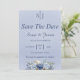 Save the Date haben Einladungen einen staubblauen Hintergrund, blaue Rose und dunkelblauen Text. Sie sind schöne Twin Spirit Designs Einladungen zu senden, um Ihre Gäste, und der gesamte Text ist anpassbar. Nutzen Sie diese Gelegenheit, um mit unseren individuellen Einladungen ein einzigartiges und unvergessliches Ereignis zu schaffen.
