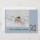 Lässige Hochzeitseinladung in staubblau mit Ihrem Foto und QR-Code auf der Rückseite, um zu entsprechen. Der abgedämpfte blaue Hintergrund zeichnet sich durch ein dezentes Blatt-Muster aus und eignet sich perfekt für jede Jahreszeit. Vollständig anpassbar, geben Sie einfach Ihre Daten ein und laden Sie Ihr Foto für die Rückseite der Karte hoch. Wenn Sie eine Hochzeitswebsite haben, stellen Sie sicher, dass Sie das QR-Feld durch die Adresse Ihrer Website ersetzen. Suchen Sie nach anderen passenden Artikeln für Ihre Veranstaltungen, Ihren Weg!