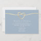 Einfache, minimale, moderne, elegante, staubige blaue Hochzeitseinladung mit romantischem goldenen Seilherz.