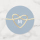 Elegante, moderne, minimalistisch staubige blaue Hochzeitsfeier Konfetti mit Monogramm - Initial, Namen von Braut und Bräutigam und goldenes Seilherz.