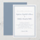 Das elegante und trendige Wedding Invitation besticht durch ein schlichtes modernes minimalistisches Design mit einem doppelten Rahmen in staubblau auf einem knusprigen weißen Hintergrund. Traditionelle Formulierungen bieten zeitlose, aber moderne Eleganz. Personalisieren Sie das Hochzeitsdesign mit Ihren Details in staubblauer Schrift und Schrift. Die Rückseite der Karte passt blau.