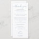 Une élégante fête mariage bleu poussiéreux merci carte de réception, personnalisée avec votre message de remerciement spécial set dans la typographie stylisée et programme d'événements et de la fête de mariage au contraire. Un gardien spécial vous remercie pour vos invités. Conçu par Thisisnotme©
