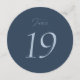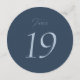 Elegant dusty blue wedding table number sign designed for modern and classic wedding receptions. The minimalist round design features refined script and serif typography, creating a timeless and sophisticated look for your wedding tables.