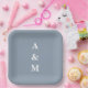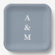 Dusty Blue White Monogrammes Initial Elegante Hoch Pappteller