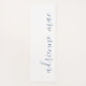 Die Vorderseite dieses Designs ist ein hübsches pastellfarbenes Denim Blau mit Ihrem Namen in weißem Skript geschrieben. Die Rückseite ist weiß mit Ihrem Namen in passendem Blau. Einfach, aber elegant. Inspirationsvoll, aber beruhigend. Genießen Sie.