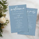 Ce programme de mariage bleu poussiéreux respire la tranquillité pour une cérémonie côtière d'été au bord de la mer. Personnalisez cette faveur bleu gris clair avec une élégante typographie minimaliste pour correspondre à votre jeu de couleurs nuptiales serein.