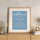 Dieses staubige blaue Begrüßungszeichen verströmt Ruhe für eine Hochzeit an der Küste im Sommer am Meer. Dieses hellgraublaue Dekor mit eleganter weißer Typografie in minimalistischer Optik passt perfekt zu Ihrem gelungenen Bridal-Stil.